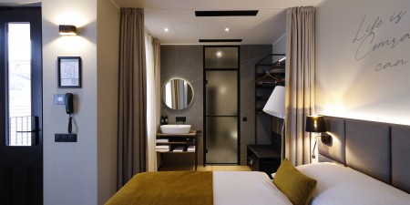 Unsere eleganten Zimmer bieten höchsten Komfort und Ruhe, ergänzt durch einen grünen, ruhigen Innenhof zum Entspannen.